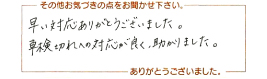 早い対応ありがとうございました。車検切れへの対応が良く、助かりました。宮前区 K.N.さま